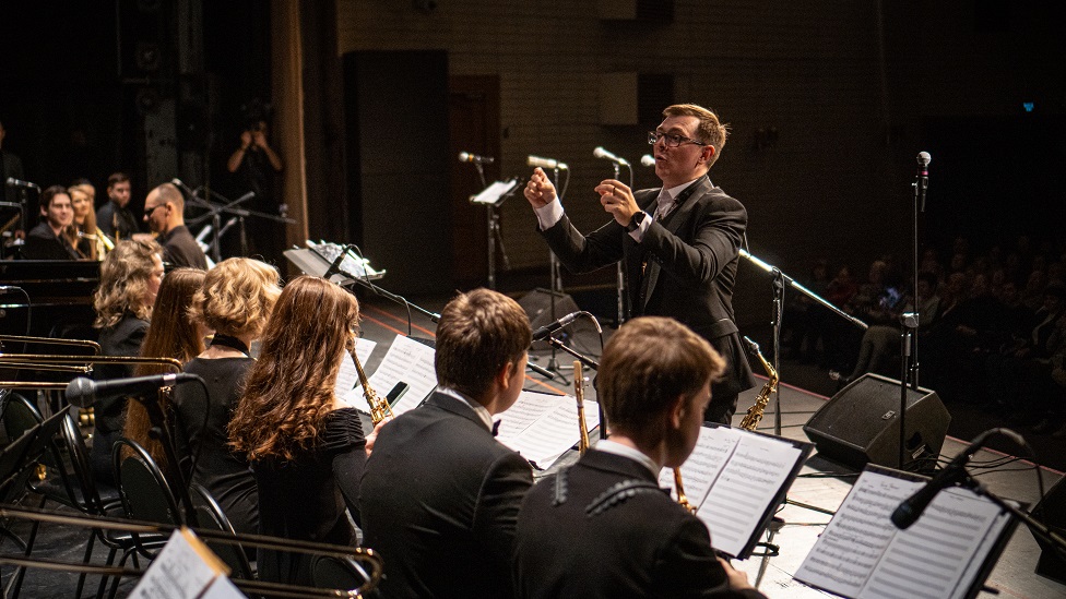 Концерт соберёт на одной сцене более 40-ка музыкантов — зрители станут свидетелями настоящего музыкального диалога между оркестрами. В программе прозвучат эксклюзивные аранжировки, написанные специально для двух биг-бэндов, сольные произведения бэнд-лидеров, совместные композиции оркестров, импровизационные состязания солистов и захватывающая дуэль барабанщиков. На одной сцене встретятся классический свинг и современный фьюжн, пронзительные баллады и вокальные композиции, произведения российских композиторов и зарубежная классика!
