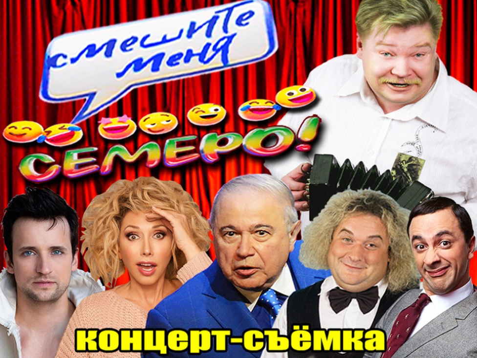 «Смешите меня семеро» — новая юмористическая развлекательная телепрограмма, которая выходит по воскресеньям на телеканале ТВ-Центр. В концерте-съёмке принимают участие самые популярные и любимые отечественные юмористы и звёзды эстрады. Ведущий — Николай Бандурин.
