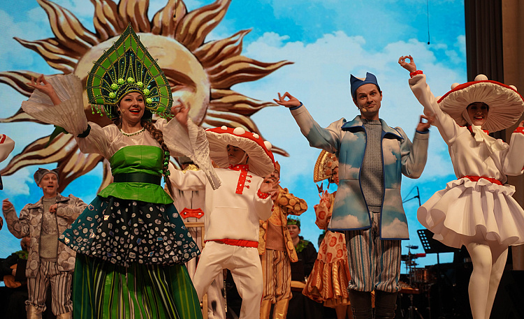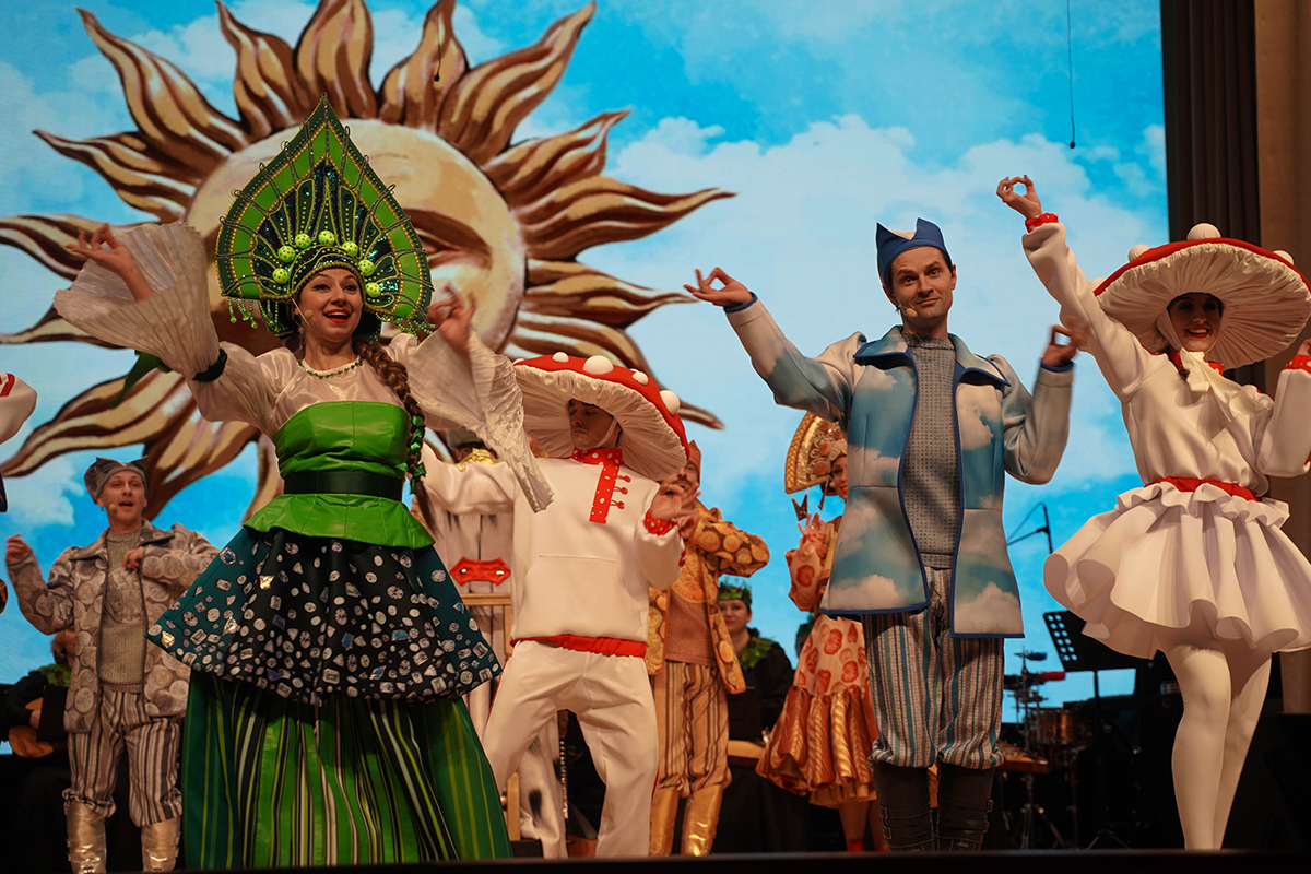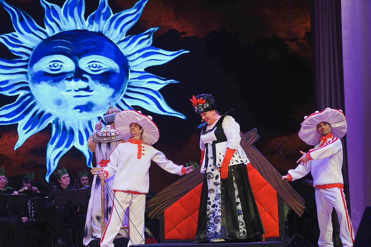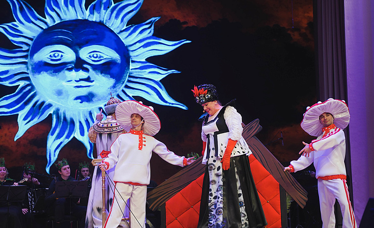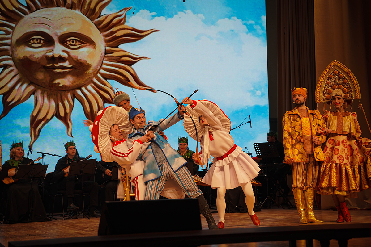 На основе этой сказки Московская областная филармония создала спектакль, в котором разные виды искусств гармонично объединились в музыкальное интерактивное представление для детей. Погружение в волшебный мир сказки обеспечивает великолепная авторская, а также давно знакомая и любимая музыка в исполнении Государственного ансамбля русской музыки и танца «Садко».