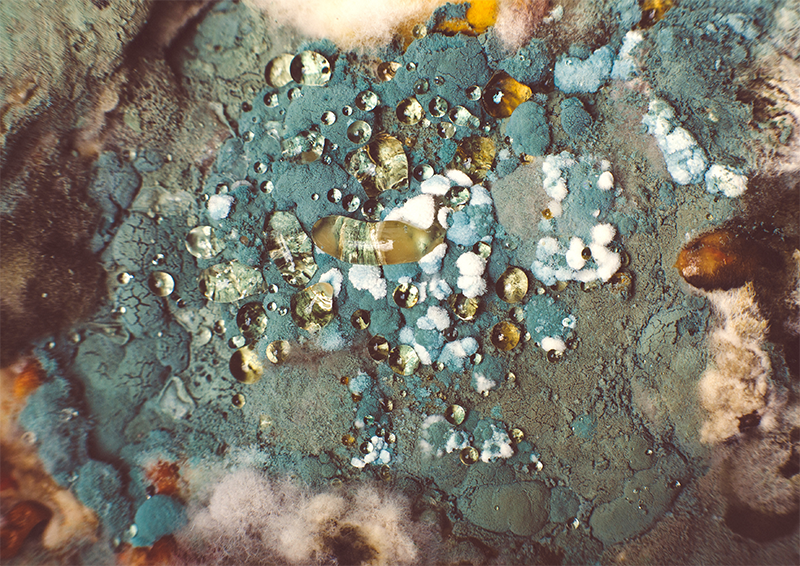 Гостям экспозиции предстоит увидеть удивительные картины, расположившиеся в «чашках Петри», плоских цилиндрах с крышкой, применяемых при лабораторных исследованиях. Что это — цветовые пятна, формирующие причудливые узоры на земной поверхности, или растущие пятна плесени?